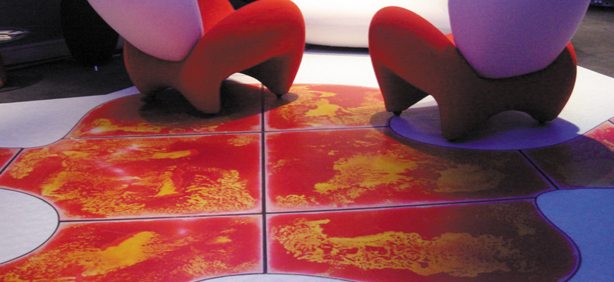 With the aim of developing interactive environments, B.lab Italia has created a series of tabletop surfaces and floor tiles called B.Surfaces. Liquids encapsulated within a resilient polymer shell.